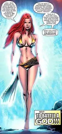 Aphrodite is a fictional character in the comic book, The Incredible Hercules published by Marvel Comics. Aphrodite is an Olympian based on the goddess of the same name from Greek Mythology. The Marvel version of the character first appeared in Venus #1 (August 1948).[1][2]