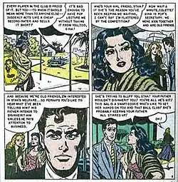 During this time, Barclay's complicated relationship with benefactor Sekowsky — who bestowed expensive gifts on her even after his marriage to Joanne Latta[9] — caused friction in the Timely bullpen, which she left in 1949. As she later described the office environment,