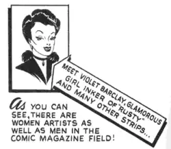 - ↑ Violet Barclay and Valerie Barclay tentative credits at the Grand Comics Database