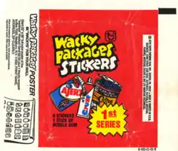 Wacky Packages are a series of humorous trading cards featuring parodies of consumer products. The cards were produced by Topps beginning in 1967, first in die-cut, then in peel-and-stick sticker format. There were 16 series produced between 1973 and 1977, with some reprints and several new series released up to the present day.