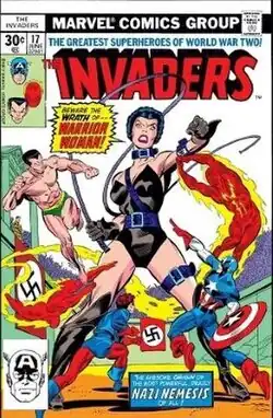 Warrior Woman first appears in The Invaders #16 (May 1977), in a story titled "The Short Happy Life of Major Victory", and was created by Roy Thomas and Frank Robbins. She is brought back later in Namor the Sub-Mariner.