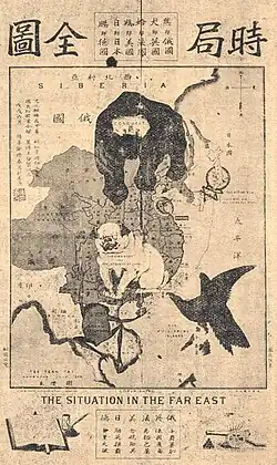 ![]() The Situation in the Far East, an 1899 manhua by Tse Tsan-tai | |