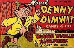 During its first years, the daily Winnie Winkle evolved from simple gags to more complex humorous situations. A new character was introduced in the form of Perry, a little boy from the backstreets, whom the Winkles adopted in 1922. The focus of the Sunday pages then shifted to the adventures of Perry at home, school and on the streets. Although compelled to wear a duffle coat and fancy clothes, he continued to frequent his old neighborhood. The local gang, the Rinkydinks, in contrast, still wore torn and patchy clothing, and were regarded by Winnie as "loafers." One member of the Rinkydinks was the dunce Denny Dimwit, who popularized the catch phrase "Youse is a good boy, Denny."[14]