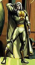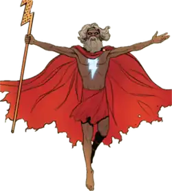The original version of the character was Jebediah, a young boy who of Egyptian and Canaanite origin who served as the Champion, gaining his power through Canaanite gods. In his later years, he forgoes their powers and learned wizardry before seeking a successor to empower. A revised version of the character is introduced after the New 52. At first introduced as a Kahndaq native who ascended to godhood, this origin was retconned and he is revealed to be Mamaragan, a figure based upon the deity in Kunwinjku culture.[1] This version served as a adjudicator on Earth's supernatural matters as leader of a cabal of six other wizards, making up the Council of Eternity until a betrayal forces him to seek a successor to both his power and the fallen Council.[2] Although the character's motivations and background history differ, they're intended to be incarnations of the same character.[3]
