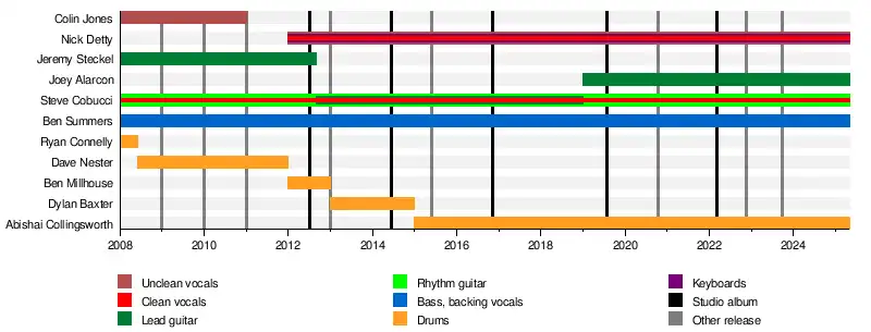 - Steve Cobucci – rhythm guitar, clean vocals (2008–present); lead guitar (2012–2019)