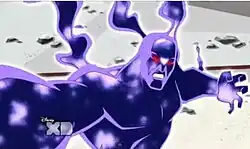 Since his resurrection, he has rarely used most of these powers but can still shift between human and energy states at will.[77] In later issues his ionic form has begun to "leak" energy, allowing Iron Man to track him by following his unique energy signature, the other heroes speculating that his condition is responsible for his currently unstable attitude and anger at the Avengers.[78] In later appearances he appears to have increased in strength and power, having also learned to teleport at will. He has done so several times in recent appearances; once being when he was detained by the Avengers after staging an attack on the mansion,[79] and again while battling and easily winning against the Red Hulk.[80] Wonder Man has some limited effect on Electromagnetic phenomena as was explained to him by Hank and Nadia Pym, to that end he can absorb various forms of energy be it radiological,[81] ionic,[82] even anti-material in nature.[83]
