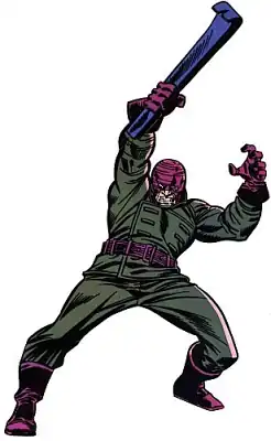 Dirk Garthwaite, a.k.a. the Wrecker, first appeared in Thor, and is depicted as a former manual laborer for a demolitions crew who is fired for his violent and anti-social tendencies. Garthwaite created a costume for himself and called himself the Wrecker, committing a series of robberies, demolishing looted locations and leaving a crowbar at the scene of the crime.[3] The Wrecker entered a hotel room occupied by Asgardian god Loki, the adopted brother and archenemy of the Thunder God Thor. Upon knocking out the de-powered Loki, the Wrecker put on his helmet and received an enchantment from Loki's ally, Karnilla the Norn Queen, who assumed he was Loki because the Wrecker was wearing his helmet and she only saw him from the back. Therefore, Karnilla was the source of his newfound enchanted powers. Reveling in his power, the Wrecker embarked on a crime spree and defeated Thor who, at the time, had had his power severely reduced by his father Odin (ruler of the Norse gods) as punishment for choosing to remain on Earth. A building collapsed onto the Thunder God, nearly killing him. The Wrecker was defeated by the Asgardian goddess Sif, who animated the armor of the Asgardian Destroyer to save Thor. The Wrecker's crowbar was shattered.[4]