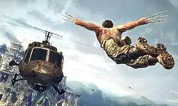 In May 2009, Raven Software set up a developers blog.[13] Blur Studio, who also worked with Raven on X-Men Legends II: Rise of Apocalypse and Marvel: Ultimate Alliance, provided all of the CGI cutscenes for the game.[14] Hugh Jackman reprised his role as the voice of Wolverine, though he did not provide motion capture. Jackman worked on the project for over a year and "did more voiceover for this than [he had] ever done before."[11] From January to March, the developers published a large number of 3D screenshots.[15][16][17][18][19] The music for the game was composed by Paul Haslinger.[20] Raven worked with publisher Activision to provide easter eggs from other games to be found, such as the Lich King's sword from World of Warcraft: Wrath of the Lich King[21] and the cake mentioned in the game Portal.[22]