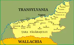 The region, which comprises parts of Brașov and Sibiu counties, is bordered to the north by the Olt River and to the south by the Făgăraș Mountains, with its historical center in the Făgăraș Citadel.