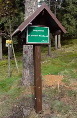 Wooden mark of the 15th meridian east passing through the Ještěd-Kozákov Ridge. Made by local group called Ještěďáci.