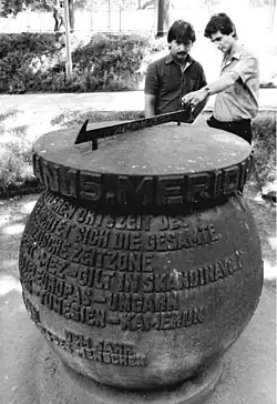 Monument marking the meridian in Stargard, Poland