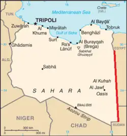 Most of the border between Libya and Egypt is defined by the meridian, as is much of the border between Libya and Sudan.[1]