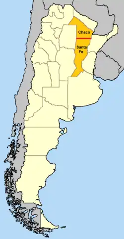 ArgentinaInland it notably demarcates the chief southern border of Chaco Province, namely with Santa Fe Province. 28°0′S 55°23′W / 28.000°S 55.383°W