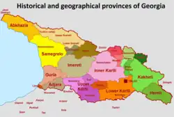 | Imereti | 463,100 | 83 | 6,475 | West | Small part de facto part of South Ossetia, considered occupied by Russia by Georgia |