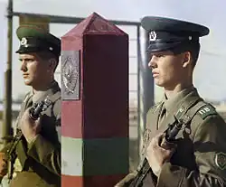 It was reported in 2001 that Uzbekistan had built a barrier along the border, consisting of a barbed wire fence and a second, taller, 380-volt electrified barbed-wire fence, land mines and a patrol of heavily armed Uzbek soldiers.[7]