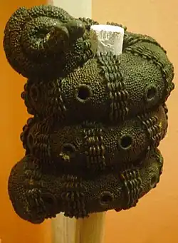 In the western Sahel the rise of settled communities occurred largely as a result of the domestication of millet and of sorghum. Archaeology points to sizable urban populations in West Africa beginning in the 4th millennium BC, which had crucially developed iron metallurgy by 1200 BC, in both smelting and forging for tools and weapons.[101] Extensive east-west belts of deserts, grasslands, and forests from north to south were crucial for the moulding of their respective societies and meant that prior to the accession of trans-Saharan trade routes, symbiotic trade relations developed in response to the opportunities afforded by north–south diversity in ecosystems.[102] Various civilisations prospered in this period. From 4000 BC, the Tichitt culture in modern-day Mauritania and Mali was the oldest known complexly organised society in West Africa, with a four tiered hierarchical social structure.[103] Other civilisations include the Kintampo culture from 2500 BC in modern-day Ghana,[104] the Nok culture from 1500 BC in modern-day Nigeria,[105] the Daima culture around Lake Chad from 550 BC, Djenné-Djenno from 250 BC in modern-day Mali, and the Serer civilisation in modern-day Senegal, which built the Senegambian stone circles from the 3rd century BC. There is also detailed record[106] of Igodomigodo, a small kingdom founded presumably in 40 BC, which would later go on to form the Benin Empire.[107]
