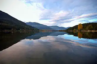 ![]() Alta Lake in October 2007, looking north from approx mid-lake. Whistler Cay neighbourhood at right. | |
