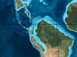 The Altiplano Cundiboyacense is formed as part of the uplift of the Eastern Ranges of the Colombian Andes since Neogene times. Hydrothermal activity in fractures of the forming Andean chain left its trace in the form of the many emeralds found in the western and eastern parts of the Altiplano. From the Early Cretaceous until the Eocene, the region of the present-day Altiplano was dominated by a marine environment, as part of the long inland sea of northern South America. In these warm tropical seas a fauna of ichthyosaurs and pliosaurs developed, with important finds (Kronosaurus boyacensis (El Fósil), Muiscasaurus, with four nostrils) in the Paja Formation of Villa de Leyva.[5] During the Late Eocene-Early Oligocene (35-30 Mya) epochs, South America became detached from its longest connected former member of Pangea; Antarctica. The isolation of the South American paleocontinent led to a large biodiversity of New World species.