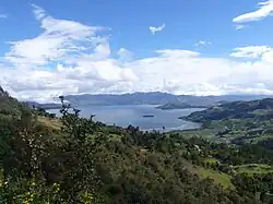 The Altiplano Cundiboyacense is surrounded by and contains various Andean unique ecosystems; páramos. 60% of all páramos in the world are situated in Colombia. (Specifically, in the department of Boyacá with the most relative area of páramos).[2] Boyacá is the department where 18.3% of the national total area is located.[3] To the south the Sumapaz Páramo (largest in the world) forms a natural boundary of the Altiplano. Chingaza contains páramo vegetation, as does the most beautiful Ocetá Páramo in the northeast.[4] On the Altiplano the microclimate of the surroundings of Lake Iguaque produces a páramo.