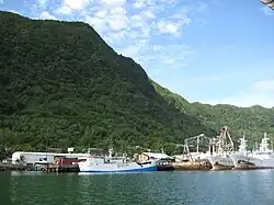 The following year, the U.S. formally annexed its portion, a smaller group of eastern islands, one of which contains the noted harbor of Pago Pago.[20] After the United States Navy took possession of eastern Samoa for the United States government, the existing coaling station at Pago Pago Bay was expanded into a full naval station, known as United States Naval Station Tutuila and commanded by a commandant. The Navy secured a Deed of Cession of Tutuila in 1900 and a Deed of Cession of Manuʻa in 1904 on behalf of the U.S. government. The last sovereign of Manuʻa, the Tui Manuʻa Elisala, signed a Deed of Cession of Manuʻa following a series of U.S. naval trials, known as the "Trial of the Ipu", in Pago Pago, Taʻu, and aboard a Pacific Squadron gunboat.[21] The territory became known as the U.S. Naval Station Tutuila.