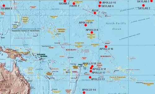 American Samoa and Pago Pago International Airport had historic significance with the Apollo Program.[30] The astronaut crews of Apollo 10, 12, 13, 14, and 17 were retrieved a few hundred miles from Pago Pago and transported by helicopter to the airport prior to being flown to Honolulu on C-141 Starlifter military aircraft.[31]