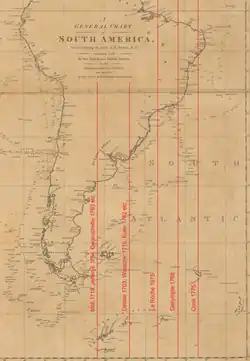 - 1 2 Cook, James. (1777). Chart of the Discoveries made in the South Atlantic Ocean, in His Majestys Ship Resolution, under the Command of Captain Cook, in January 1775. London: William Strahan & Thomas Cadell. / Relevant fragment