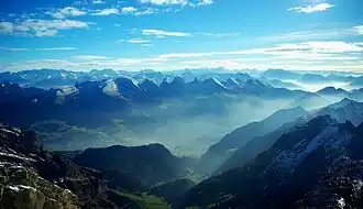 The Appenzell Alps (German: Appenzeller Alpen) are a mountain range in Switzerland on the northern edge of the Alps. They extend into the cantons of Appenzell Ausserrhoden, Appenzell Innerrhoden and St. Gallen and are bordered by the Glarus Alps to the west and the Rätikon to the south-east.