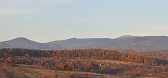 The main peaks of the Apuseni Mountains, with Bihorul on the right