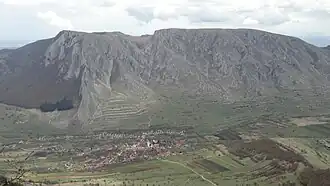 The Apuseni Mountains (Romanian: Munții Apuseni, lit. transl.'Western Mountains'; Hungarian: Erdélyi-középhegység, transl.'Transylvanian Mountains') is a mountain range in Transylvania, Romania, which belongs to the Western Romanian Carpathians. The highest peak is the Bihor Peak at 1,849 metres (6,066 ft). The Apuseni Mountains have about 400 caves.