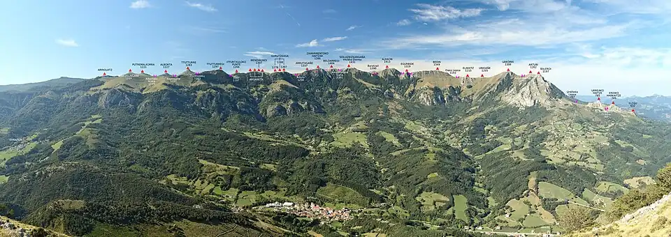 This plateau feature is created by the peaks of Jentilbaratza, Aizkoate, Aizkorrandi, Arastortz, Agautz, Leizadi, Asundi, Loibideko Mailoak and Ikarandieta.[14]