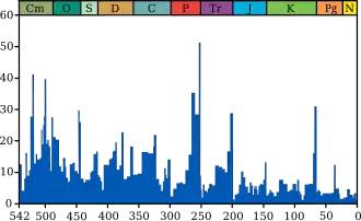 - ↑ McInerney, Francesca A.; Wing, Scott L. (25 April 2011). "The Paleocene-Eocene Thermal Maximum: A Perturbation of Carbon Cycle, Climate, and Biosphere with Implications for the Future". Annual Review of Earth and Planetary Sciences. 39 (1): 489–516. Bibcode:2011AREPS..39..489M. doi:10.1146/annurev-earth-040610-133431. ISSN 0084-6597.