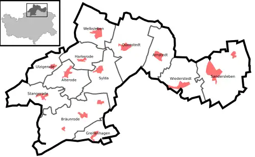 | Postal codes | 06333 (Arnstedt, Bräunrode, Greifenhagen, Quenstedt, Sylda, Welbsleben, Wiederstedt), 06456 (Sandersleben), 06543 (Alterode, Harkerode, Stangerode, Ulzigerode) |