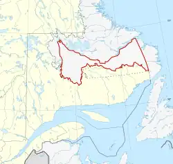 The territory of Ashuanipi was defined under the terms of An Act respecting the territories of Abittibi, Mistassini and Ashuanipi[1] (French: Loi concernant les territoires d'Abittibi, de Mistassini et d'Ashuanipi) of 1899. Article 2.3 of the act read: "The territory of Ashuanipi is bounded to the north, to the east and to the west by the limits of the province; and to the south and southwest by the county of Saguenay".[2] The Revised Statutes of the Province of Quebec (1909) recognized the same description of the territory.[3] The Territorial Division Act's description remains largely the same, but alters the south and southwest portion's boundaries by the "electoral districts of Duplessis and Saguenay".[4]