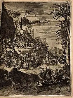 The Ahoms, a Tai group, ruled Upper Assam for almost 600 years.[30] In the year 1228 the Tai-Ahoms came to the Brahmaputra Valley under the leadership of Sukapha along with 9,000 men from Mong Mao, a Tai state, situated in South-Western Yunnan of China, and established his kingdom in Upper Assam. In 1253, he founded the capital city in a hillock and named it Charaideo. At the time of his advent, the area was inhabited by Morans and Borahis, to the north, to the north-east was the Chutia kingdom and to the south was the Kachari kingdom and to the west on the plains were the Baro-Bhuyans.