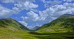 The Astore Valley has an area of 5,092 km2 and lies at an altitude of 2,600 metres (8,500 ft). The valley has approximately 250 square kilometres (97 sq mi) of glacier cover.[4] The nearest glacier after entering the valley is the Harcho Glacier,[5] and the most accessible is the Siachen Glacier.[6] Overall less than 6% of the district is covered by forests, with 43% of land consisting of alpine and winter pastures.[7]