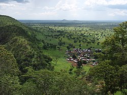 Atakora Department is located in the northwest of Benin, bordering Burkina Faso to the north, Alibori Department and Borgou Department to the east, Donga Department to the south and Togo to the west. The terrain is mainly forested mountains, from which two tributaries of the Niger River - the Mékrou River and the Pendjari River - originate.[2] Part of the Atakora Mountain Range is located in the region and continues into northeastern Togo.[3] The mountain range is characterised by numerous dambo areas (shallow wetlands) and head swamps.[4] The bulk of the Pendjari National Park lies within Atakora.
