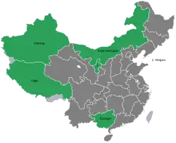 | Number | 5 (Guangxi, Inner Mongolia, Ningxia, Tibet, and Xinjiang) |