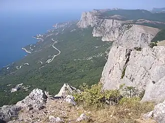 Environmental concerns regarding Ay Petri yayla have been particularly significant, with Anatoliy Hrytsenko calling on President Viktor Yushchenko to expand environmental protections to clear pollution on the mountain in 2007.[4] In 2014, environmental activists protested plans by the government of Anatolii Mohyliov to expand recreational areas on the yayla, as well as for the removal of areas on the Southern Coast from the Yalta Mountain-Forest Nature Reserve.[5]