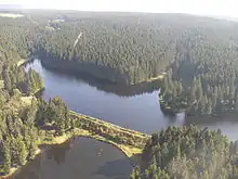 The Bärenbrucher Teich ("Bärenbruch Pond") is an historic reservoir in the Harz Mountains of central Germany. It lies east of Buntenbock near Clausthal-Zellerfeld.