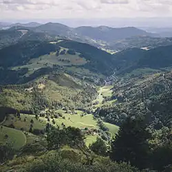 Baden-Württemberg is formed from the historical territories of Württemberg, Baden and Prussian Hohenzollern.[14] Baden spans along the flat right bank of the river Rhine from north-west to the south (Lake Constance) of the present state, whereas Württemberg and Hohenzollern lay more inland and hillier, including areas such as the Swabian Jura mountain range. The Black Forest formed part of the border between Baden and Württemberg.