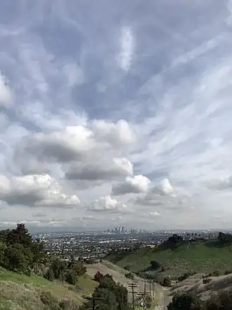 The Baldwin Hills are a low mountain range surrounded by and rising above the Los Angeles Basin plain in central Los Angeles County, California.[1] The Pacific Ocean is to the west, the Santa Monica Mountains to the north, Downtown Los Angeles to the northeast, and the Palos Verdes Hills to the south—with all easily viewed from the Baldwin Hills.
