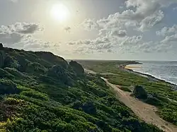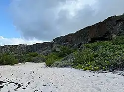The Barbuda Highlands, referred to locally as The Highlands, are a range of hills located on the island of Barbuda in the Caribbean.[1][2][3][4] It is named after the now-ruined Highland House. The Highlands includes Barbuda's highest point at 44.5 meters above sea level,[5] and the hills are characterized by rocky outcroppings, scrub vegetation, cacti and a unique ecosystem that includes several species of endemic plants and wildlife.[6] The Barbuda Highlands are a protected area,[7] and are recognized for their environmental and geological significance. The highlands have many caves and are located on the Atlantic Ocean.[8]