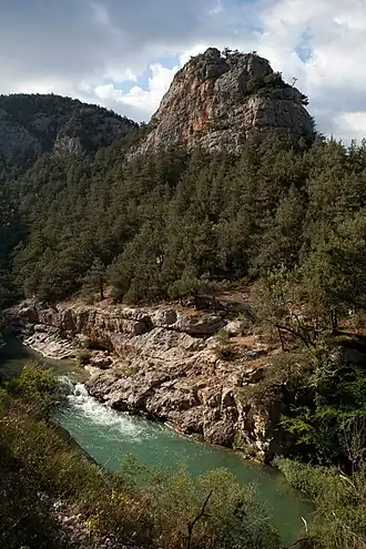 Located in the Baydar Valley, the Baydar Nature Reserve is noted by the Encyclopedia of Modern Ukraine for its multi-tiered appearance, including elements of both the Baydar Valley and the Crimean Mountains,[1] in particular its Main Range.[2] The reserve is home to several canyons (including the Chorna Canyon, itself formerly a nature reserve), ridges, and karst landforms. Approximately 77% of the reserve is covered by forests, primarily juniper, oaks, ash, beech, hornbeam, and pistachio. A total of 54 plant species and 41 animal species live in the reserve, among them rare species.[1]