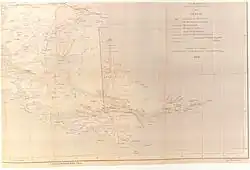 In 1882 the Argentine Geographic Institute decided to issue a general map and an atlas of the Argentine Republic. The task was put in the hands of the well known Professor of the (Argentine) University of Córdoba, Arturo Seelstrang, who had already brought out a map of the Republic in 1875. The Atlas was "constructed and published" by the institute "under the auspices of the National Government".[1]: §137 Plate XXVII of the Atlas, reproduced here, was headed "Gobernacion de la Tierra del Fuego Y Las Islas Malvinas" ("Governorship of Tierra del Fuego and the Malvinas Islands") and were drawn up in 1885 and published the following year. As may be observed, the map shows the boundary line running through the centre of the Beagle Channel, indicating Picton, Nueva and Lennox Islands an all the other islands and islets extending southwards as far as Cape Horn as being under Chilean sovereignty.
