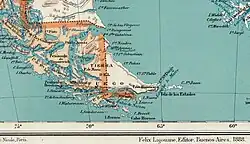 In 1889 appeared the Carte de la République Argentine as part of L'Agriculture et l'Elevage dans la République Argentine, officially sponsored for the purposes of the Argentine participation in the Paris World Exhibition of 1889. In the work of which this map was a part, the version there given of the article III of the 1881 Treaty (Argentine attribution in the Islands clause), was seriously incorrect:[1]: §157b