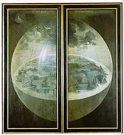 According to the descriptions from the Book of Genesis (which was one of the main sources for Beatus), the Earth was thought to be a flat plane, and sustained the vault of heaven, where the Sun, the Moon, and other minor luminaries like planets and stars, moved. There were two water masses. The waters above the firmament were contained by the vault of heaven and occasionally fell to Earth in as rain, when the floodgates opened. The waters below, fed the rivers, the streams and the great salt water masses.