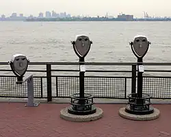 ![]() Liberty Island in December 2014 with Jersey City in the background | |