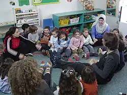 The College of Daawa and Religious Principles was established in Beit Hanina in 1978.[45] A branch of al-Quds University is also located there.[45] There are four mosques in Beit Hanina: Sultan Ibrahim Ibn Adham Mosque, Bader Mosque, Mosque of Religion College, and Mosque of Teacher's Suburb. Christian schools include the Rosary Sisters and De La Salle. College des Freres built a new school in Beit Hanina in 2000.[46] The Catholic Church runs a community center and St. Jacob's Church. In 2012, the Beit Hanina Girls School, serving grades 5–12, was renovated with funding from the Japanese government.[47]