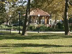 Lafayette Park gives its name to the lower, or eastern, portion of the district closest to Downtown Jersey City. It is likely named for the Marquis de Lafayette, who was stationed in Bergen in 1799, and later re-visited in 1824[7][8] A city square similar to Van Vorst Park and Hamilton Park the buildings surrounding it were constructed in different periods. Before land-filling in the early twentieth century this area was located on the Upper New York Bay. The Hackensack Indian village of Communipaw and the 16th century New Netherland plantation of Jan Everts Bout, site of the Pavonia Massacre, were located here. Whitlock Cordage[9] is an intact complex of industrial buildings built in the Lafayette section along the banks of the Morris Canal.[10][11] The Housing Trust of America purchased the property to preserve the structures as affordable housing. Parts of the neighborhood are part of the Communipaw-Lafayette Historic District.[12] Berry Lane Park, which upon completion will be the largest municipal park in Jersey City, is under construction along Garfield Avenue.