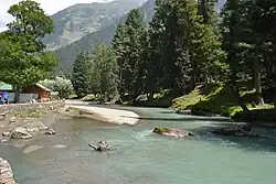Betaab valley is a very popular tourist destination in Jammu and Kashmir. It is also a favourite campsite of travellers as it also serves as a base camp for trekking and further exploration of the mountains.[2] The valley is a walk-able distance from Pahalgam. The crystal clear and chilly water of the stream bubbling down from the snowy hills is a delight; locals here drink this water too. Baisaran and Tulian Lake are few nearby attractions that can be visited.[3]